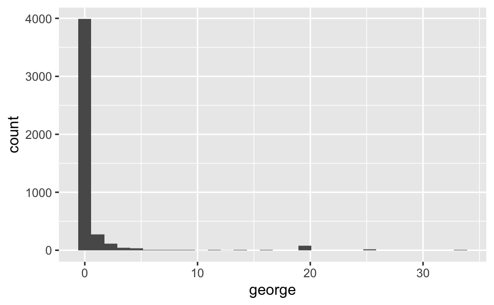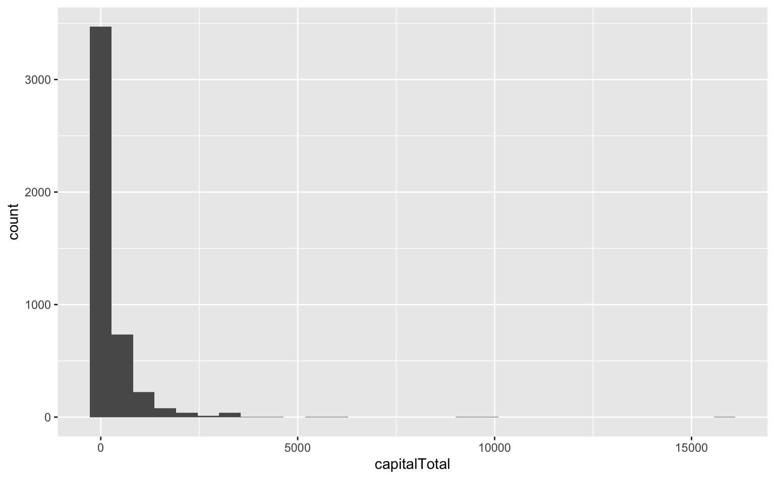 capitalTotal`stat_bin()` using `bins = 30`. Pick better value with `binwidth`.