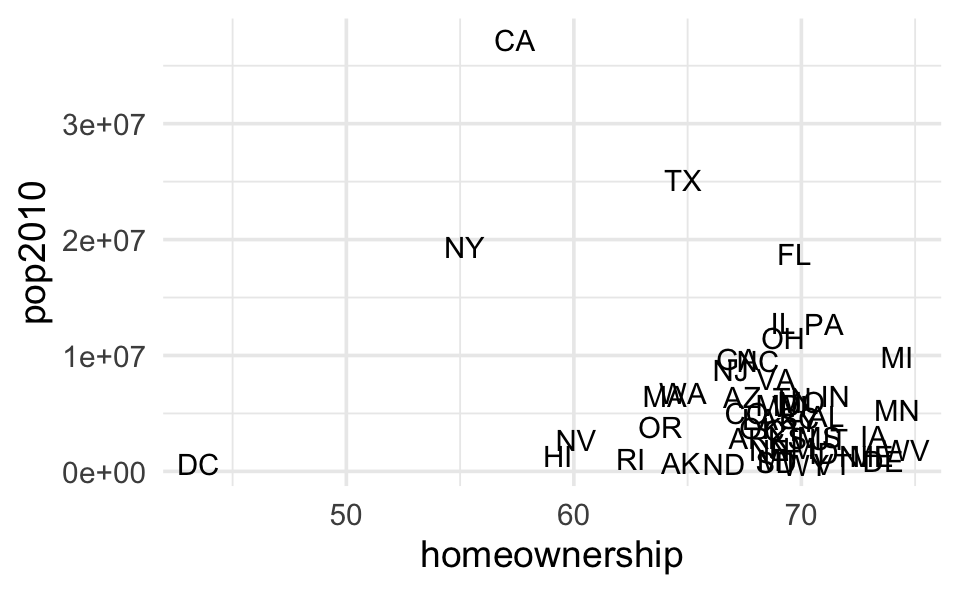 geom_text()Can be useful when individual observations are identifiable, but can also get overwhelming…