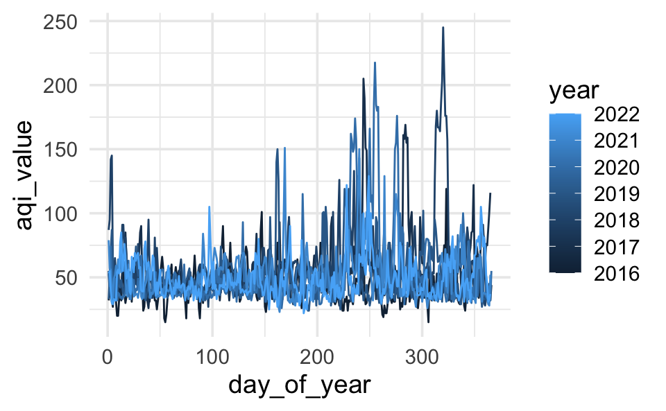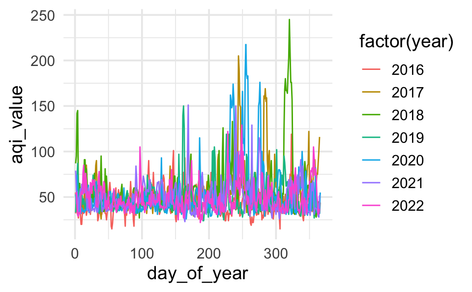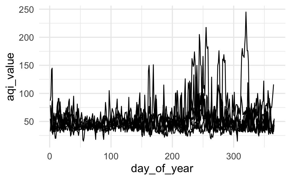 ggplot(sf, aes(x = day_of_year, y = aqi_value, group = year)) +
