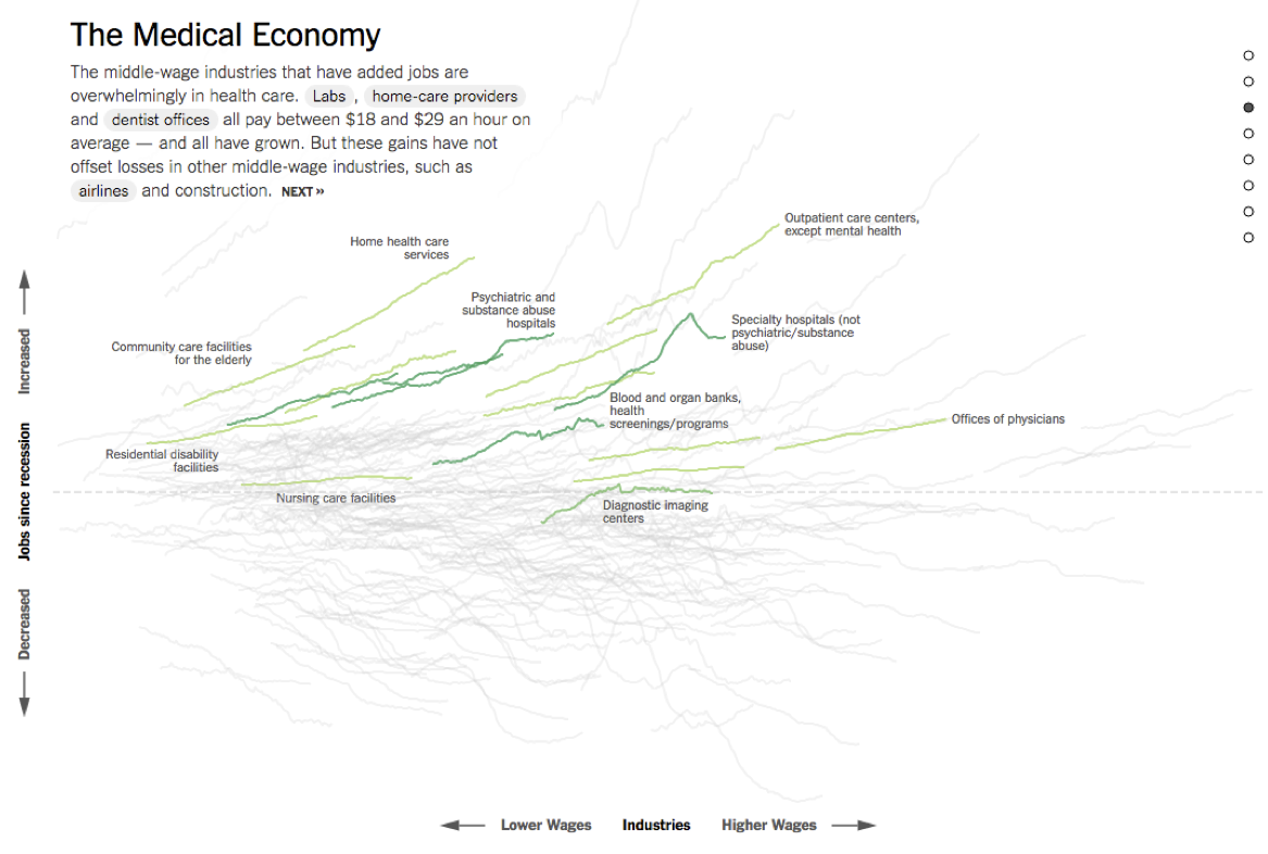 Entrances/Exits: enter_*()/exit_*() defines how new data should appear and how old data should disappear during the course of the animation